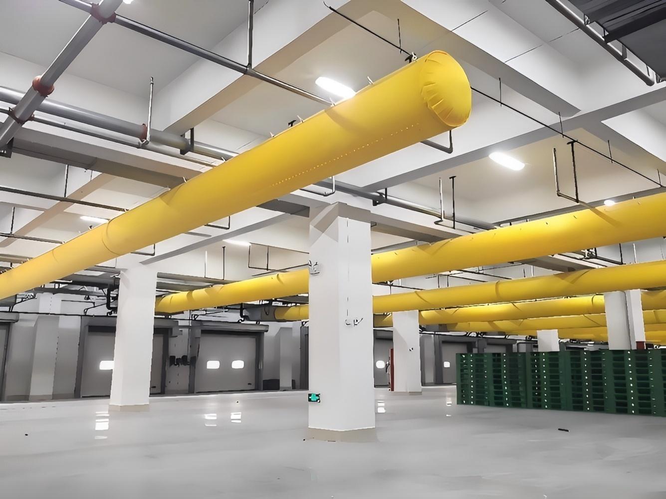织物风管应用领域涵盖工业制造、医药化工、商业物流及体育场馆等场景,满足恒温恒湿、防腐防尘等多样化需求。